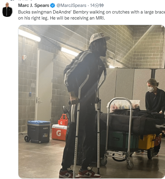 雄鹿悍将不幸伤退!本布里独自拄双拐离开勇士球馆,明日接受核磁检查