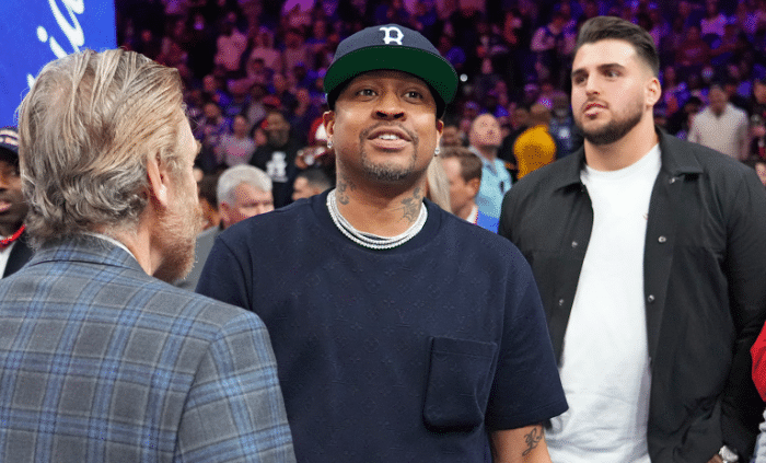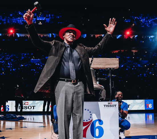 传奇“J博士”朱利叶斯-欧文特地前来为今天的比赛鸣钟。艾弗森等人也都来到现场观战,这场比赛可以用盛况空前来形容。