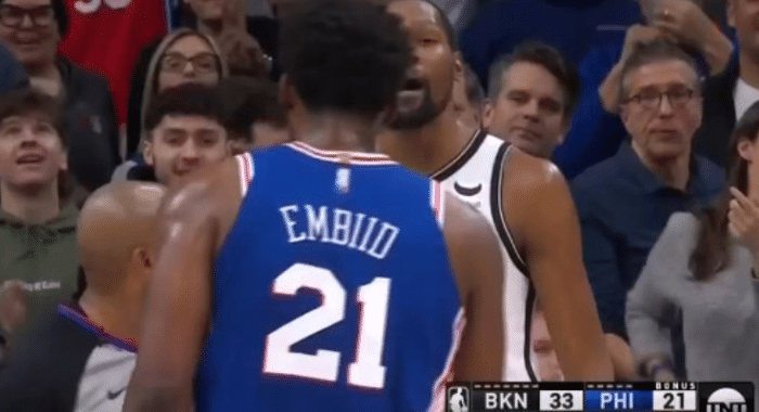 关键时刻,恩比德站了出来,他连续砍分,帮助76人缩小比分差距,当恩比德站上罚球线的时候,现场也响起了MVP的欢呼声。杜兰特的表现也很强势,帮助篮网保持领先,在首节最后阶段,杜兰特和恩比德对喷垃圾话,裁判也过来劝说,可见这场比赛,双方寸步不让。
