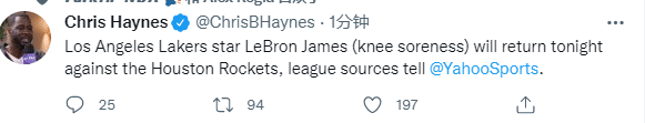 上一场湖人客场不敌马刺,赛前詹姆斯因左膝酸痛而宣布缺席比赛,而且湖人包机遇到故障而耽误2个小时的行程;此前湖人官方把詹姆斯的出战状态列为出战成疑,如今名记确认詹姆斯将出战火箭。