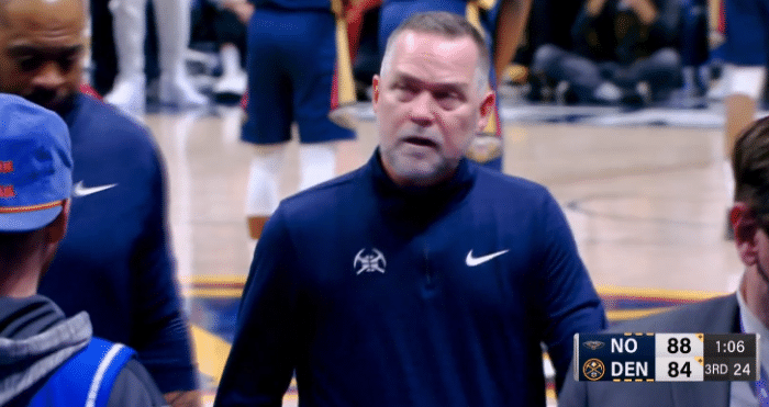 下半场,英格拉姆第三节继续疯狂砍分,打满12分钟独砍17分4篮板4助攻,中投、三分全都有,期间掘金主帅迈克-马龙因不满裁判吹罚戈登走步,冲进球场和怒吼连续吃到两次技犯,被驱逐离场;英格拉姆一个回合连得6分,英格拉姆带队37-22反超比分,领先10分进入末节。