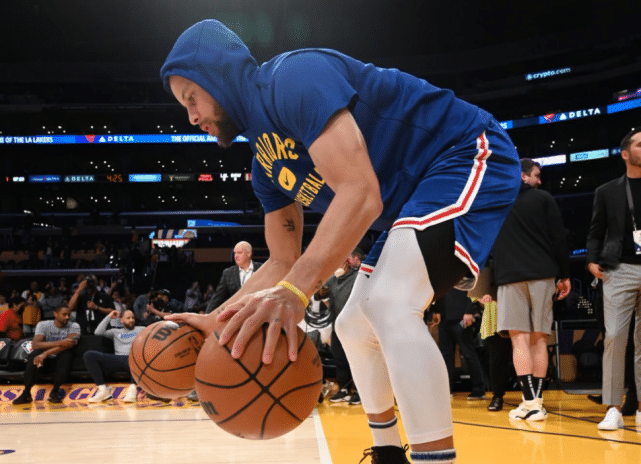 看来,来到湖人主场打球,库里也就是凑合吃一下这里的爆米花了。吃过爆米花,库里赛前状态不错,LOGO7连中!