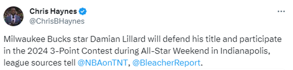 2023年在犹他举办的全明星三分大赛中,利拉德在首轮拿到26分,淘汰塔图姆和马尔卡宁晋级决赛;决赛轮,利拉德再次投出26分,绝杀希尔德从而夺得三分大赛冠军。