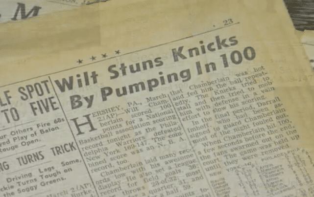 据悉,那场比赛没有进行电视直播,到场球迷的数量也不多,只有球馆最大容纳人数的一半左右。不过,就是在这样的关注度下,张伯伦创造了传奇,当他接近100分时,全场球迷高呼:“100分!100分!”张伯伦也没有让球迷失望,他真的拿到了100分!第二天,所有报纸上都出现了他拿下100分壮举的报道!