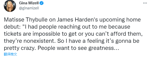 来源:24直播网03-03 10:4424直播网3月03日讯 ,哈登费城主场首秀十分火爆,76人球员塞布尔透露76人主场门票早已售罄,他表示:有些人联系了我,因为(本场比赛)门票根本买不到,或者你买不起,真的是一票难求,所以我觉得会很疯狂,人们想要见证伟大。