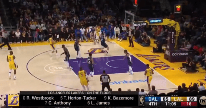 NBA常规赛湖人和独行侠的二番战打得非常激烈,上半场的独行侠一度领先21分,第三节湖人彻底爆发,在詹姆斯连续超远三分球率队缩小差距。末节湖人一度占据优势,但被独行侠一波11-0反超比分。之后湖人的表现很糟糕,威少传球被断,投篮也不中,独行侠这边稳住局面,成功拿下胜利,比分是109-104,独行侠也报了上一次交手被湖人绝杀的一箭之仇。