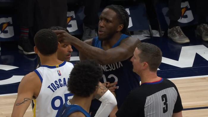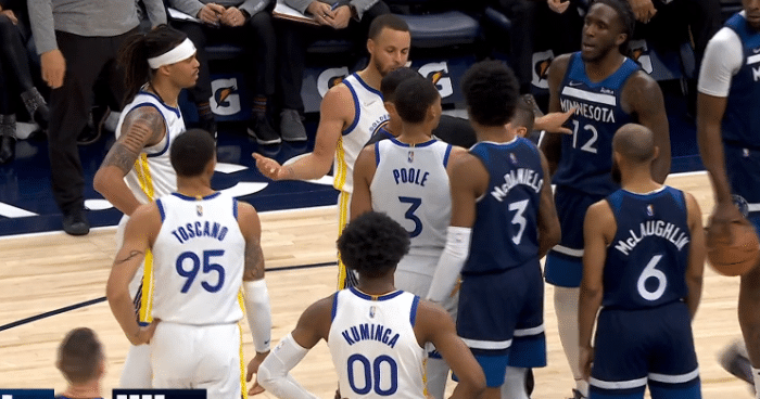 末节库里继续带队,场上发生不和谐一幕——森林狼悍将普林斯与安德森发生口角,普林斯被激怒用手指安德森的脑袋吃到技术犯规,库里执行罚球得分,不过勇士被打10-3瞬间落后到16分;库里艰难带队,唐斯不在场勇士并未占到便宜,5分59秒勇士落后到19分,勇士换下主力,库里提前6分钟放弃比赛。