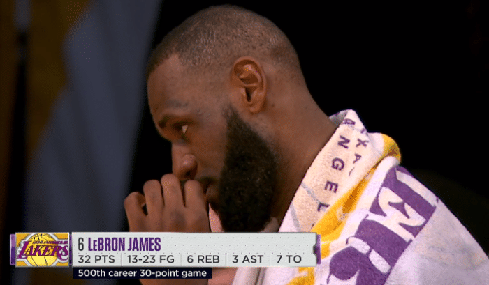 末节,詹姆斯不放弃,继续带队追分,无奈湖人挖坑太大,最终老詹只能提前放弃比赛,比赛还剩4分33秒,沃格尔换下主力,比赛彻底沦为垃圾时间;詹姆斯尽力了,但球队耻辱惨败;由于湖人球迷十分生气,坐在湖人替补席后面的几名球迷出言不逊被保安请出球馆。