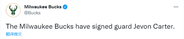 雄鹿官方正式宣布,他们已经签下杰文-卡特,并且发推写道:欢迎来打密尔沃基;雄鹿还宣布卡特将身穿球队的5号球衣,他曾穿过灰熊3号、太阳4号和篮网0号;卡特被裁后,篮网中锋德拉蒙德火速换号,把4号换成0号。
