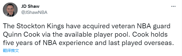 据NBA记者JD Shaw报道,国王下属发展联盟球队斯托克顿国王队今日签下了奎因-库克;库里今年28岁,上赛季曾为俄罗斯俱乐部效力,但仅打6场便于对方分手;库克上一次打NBA是在20-21赛季,出战23场比赛,场均3.3分0.7篮板0.8助攻。