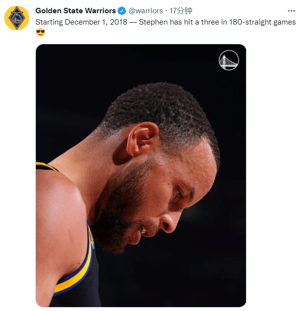 第一、库里连续180场至少投进一记三分,继续刷新历史第一纪录,自从2018年12月2日开始,库里每场都会投进三分