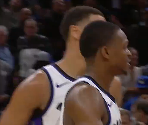 比赛结束之后,制胜抢断的福克斯和队友们庆祝,他们在这场惊心动魄的比赛中成功拿下胜利,萨博尼斯最后1分的暴扣很关键,福克斯贡献最为重要的抢断,连续两次交手都是国王赢球。