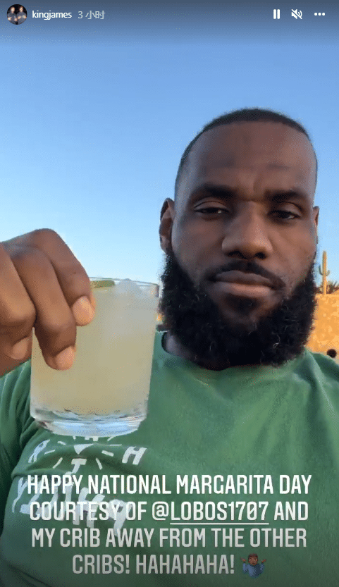 詹姆斯晒出自己在海滩度假,喝酒尽享生活,自拍并且表示:我远离其他住所的另一个家;詹姆斯还晒出他在海边度假的夜景并写道:美不胜收。