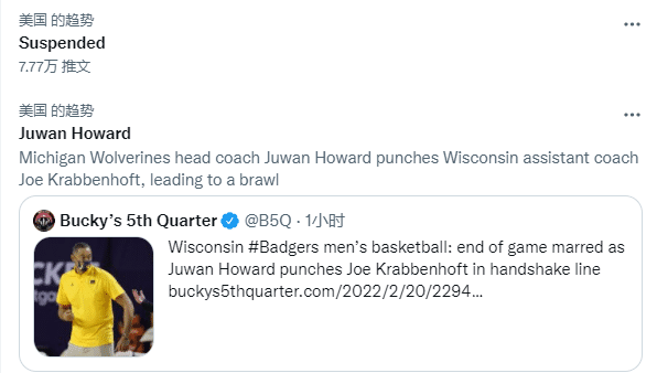 来源:24直播网02-21 11:3324直播网02月21日讯 ,在密歇根大学与威斯康星大学的一场比赛后,场边发生恶劣冲突以及大规模斗殴事件,密歇根大学主教练朱万-霍华德击打对方助教的脑袋引发火爆冲突;朱万-霍华德殴打对手这件事冲上推特热搜引热议,美记直言他该因殴打而被捕。
