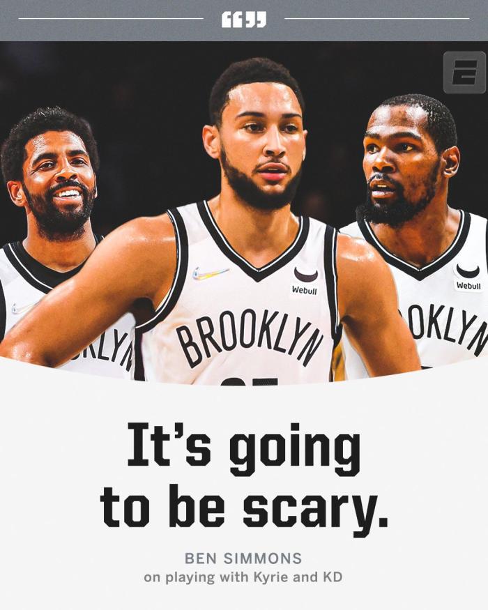 谈到担挡杜兰特和欧文时,西蒙斯表示:当我们一起搭档时会非常恐怖,这是不真实的。
