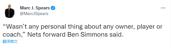 西蒙斯还表示,在交易达成后,他曾与76人主帅道格-里弗斯、76人老板和76人前锋托拜厄斯-哈里斯进行过谈话,但从未与恩比德有过谈话。