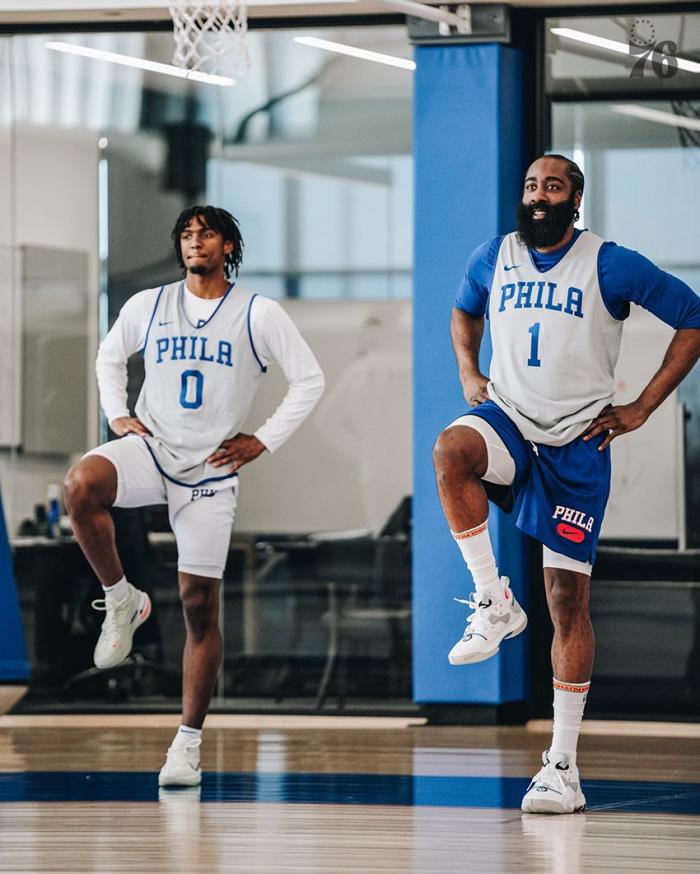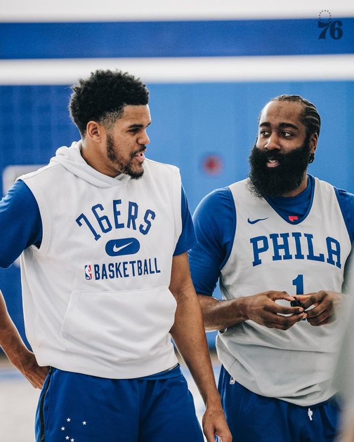 哈登身穿76人1号球衣,首次参加76人队内训练,76人官方晒出多张训练照——哈登与恩比德同框时,大胡子双手握拳怒吼以及咧嘴大笑,哈登本人更是在Ins上晒出与恩比德一起乐开怀的画面,费城两大球星都开心极了。