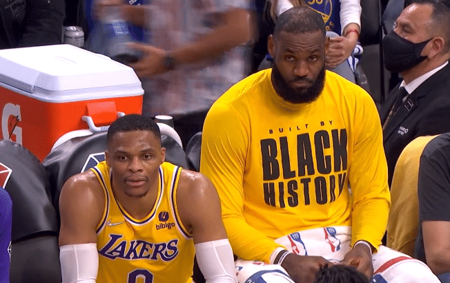 本场比赛,湖人首发五虎是詹姆斯、威少、浓眉、布拉德利和斯坦利-约翰逊。