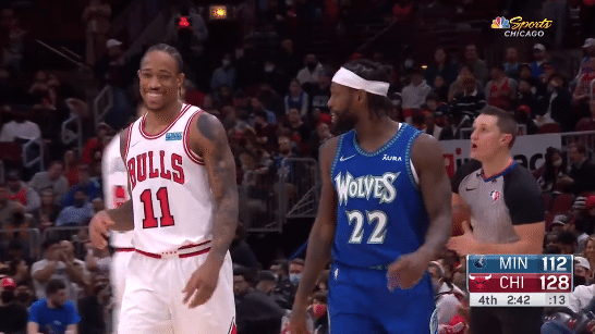 公牛和森林狼比赛最后时刻,贝弗利采用狗皮膏药式贴防,德罗赞被防得很不爽,之后德罗赞在底线附近,持球背打贝弗利,翻身后仰稳稳命中,随后德罗赞做出了一个霸气的手势,言外之意就是说贝弗利太矮小,根本防不住自己。
