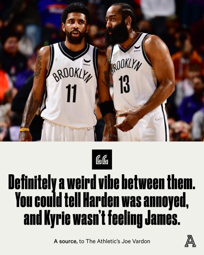 一位消息人士说:他们之间肯定有一种奇怪的感觉,你可以看出哈登很生气,而欧文没有察觉到哈登。