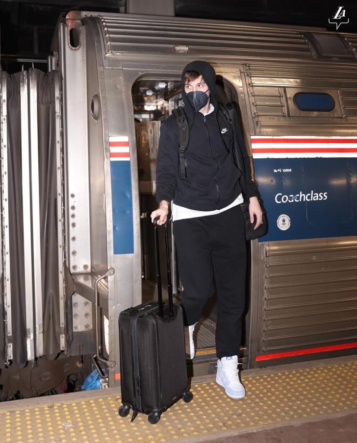 湖人全队坐火车抵达费城,老詹膝盖酸痛又添新伤!官宣续签约翰逊
