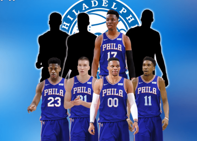 76人得到威少、博格达诺维奇、亨特、蒙克、奥孔古、2027年首轮(来自湖人)和两个来自老鹰的首轮