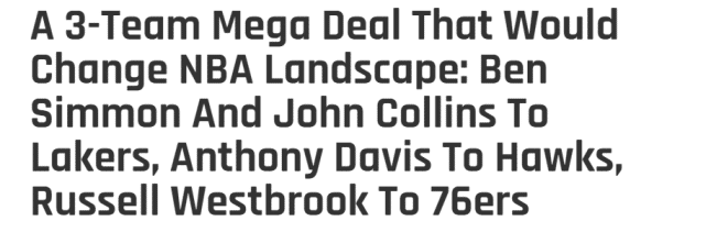 美媒列3方疯狂交易方案:湖人把威少浓眉都送走!4将联手詹皇冲冠