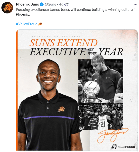 官宣!太阳与总经理詹姆斯-琼斯续签多年合同:继续打造成功的球队文化