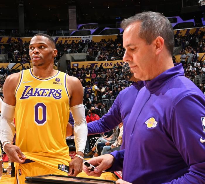 目前湖人教练组得到了管理层的批准,可以在关键时刻弃用威少,昨天沃格尔就在湖人和步行者的关键时刻让威少坐在替补席;对此威少十分不满,比赛还没结束,他提前离场,并且在更衣室与队友没有任何交流,拒绝接受采访并且提前离开球馆。