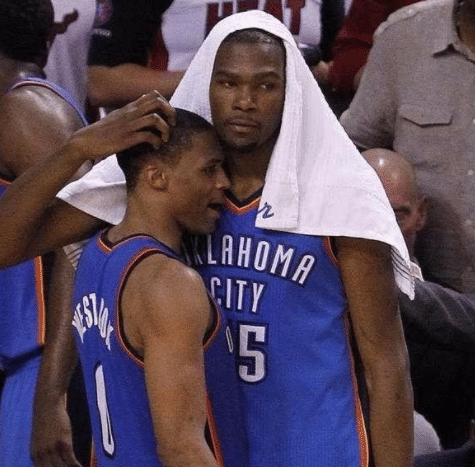 杜兰特曾和威少一起在雷霆打了8个赛季,曾一度带队杀进总决赛。