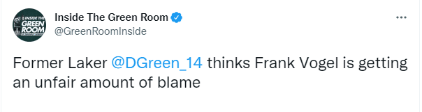丹尼-格林在节目中表示:我喜欢沃格尔教练,他很棒。这也是我不想做教练的原因之一。因为他手里拿着一副差牌,在那种情况下很难搞定,特别是受到伤病和新冠的影响,他的阵容中还缺少一些队内最好的球员;在许多事情上他被怪罪,我认为那完全不是他的错,毫无道理可言。