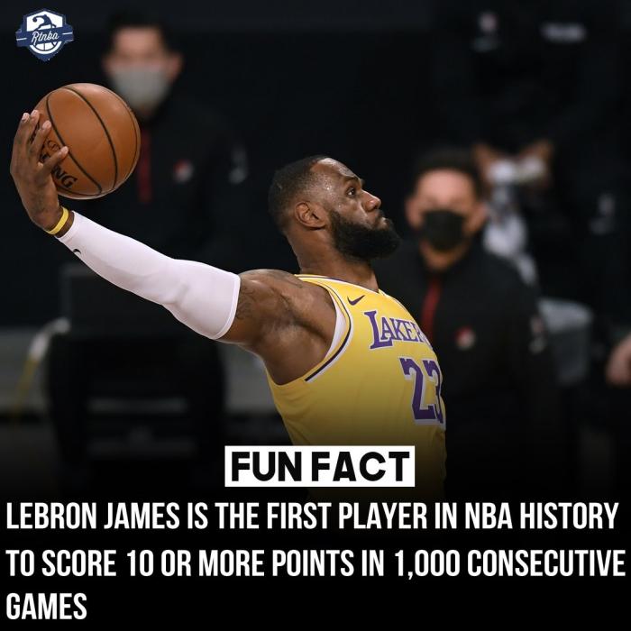 詹皇连续1000场得分上双创纪录,历史第一人!名宿:没人能防住他