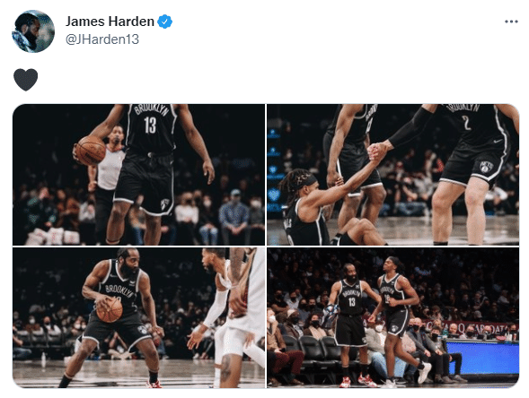 赛后哈登发推晒出赛场照,庆祝这一场大胜。