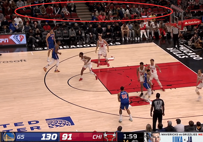 今日对阵勇士,公牛输得更惨,第二节19-41净胜22分,半场落后31分;下半场勇士进攻火力仍旧压制公牛,比赛早早沦为垃圾时间,最终公牛96-138狂输42分;德罗赞提前一节放弃比赛,本场拿到17分7助攻,末节坐在替补席一脸沮丧,公牛球迷也失望地提前退场,场边座位早已空荡荡。