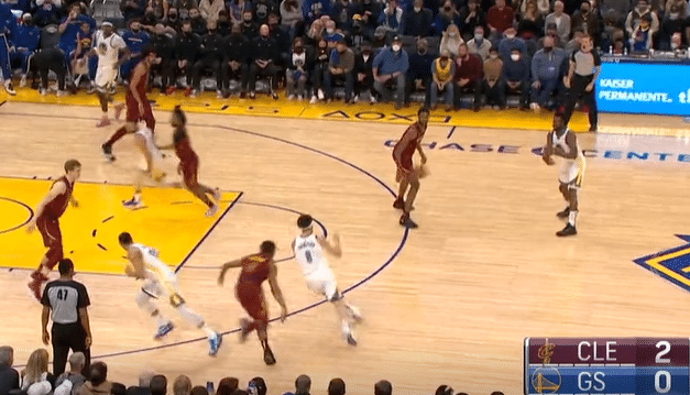 追梦格林赛前热身的时候有受伤,所以经历开场致敬克莱之后,追梦格林主动犯规被换下。值得一提的是追梦跳球时不起跳,球权直接送给骑士,而骑士这边也配合着不进攻,等待犯规后将受伤的追梦格林换下,很暖心的行为。