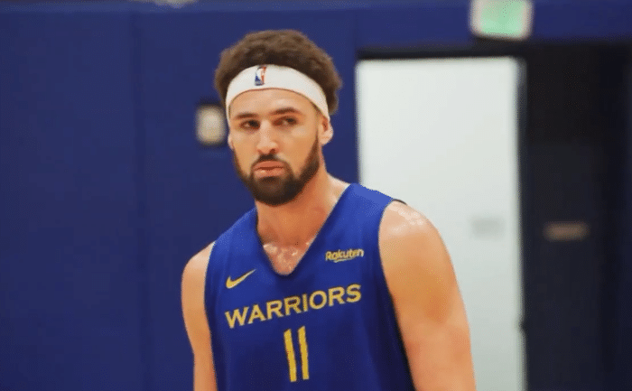 勇士训练库里连线汤神曝光!击掌撞肩表情严肃,美媒:将近千天没见了