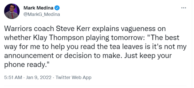 科尔在接受采访时,和记者们开起了玩笑。他表示自己在训练结束后忘了问汤普森明天打不打。当时还没官宣,科尔还是很谨慎地表示,汤普森的出战与否不是他说了算。