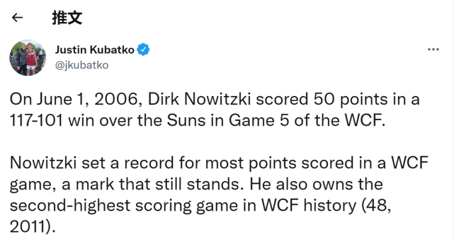 传奇!数据专家致敬诺维茨基:包揽西决历史单场得分前二纪录