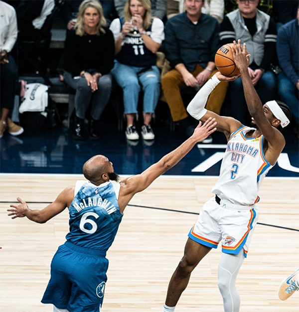雷霆的核心亚历山大表现出色,22中10砍下33分6助攻,值得一提的是,本赛季亚历山大三次面对西部第一的森林狼,分别砍下34分、33分和33分,表现极其出色,他也被认为是MVP的有利争夺者。