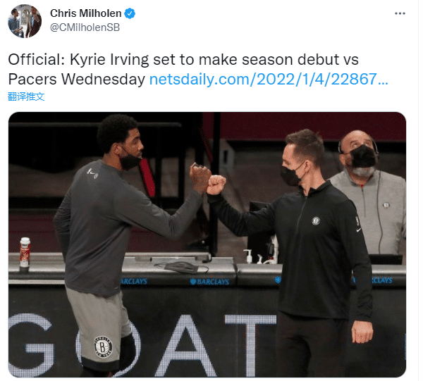 篮网确定欧文明天复出!三巨头终于再合体,未来18场他能出战12场