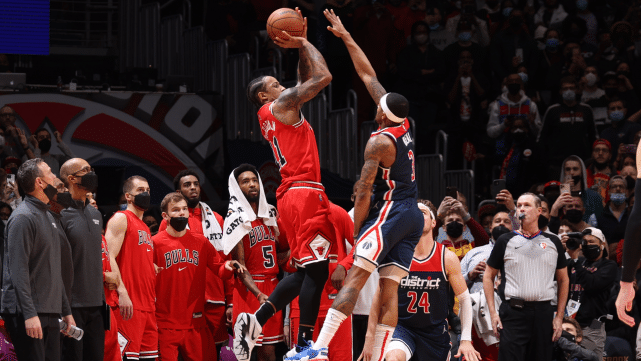 詹姆斯排名第七,他的个人数据非常出色,赛季场均28.6分7.5篮板6.6助攻。12月份,詹姆斯还是场均得分最高的球员。目前连续7场得分30+,遗憾的是湖人战绩不佳,影响了老詹的MVP赔率。德罗赞的排名飙升,他成为了NBA历史上第一位连续两天上演压哨绝杀的球员,而且都是三分绝杀,他的MVP呼声越来越高,公牛战绩上也给力,已经超越篮网来到东部第一。