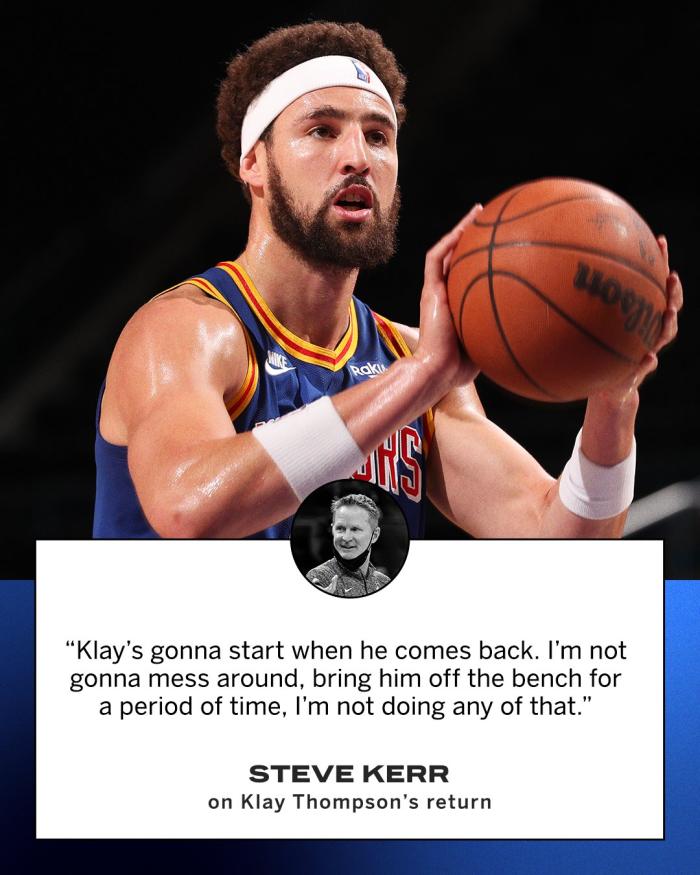 此前勇士队在丹佛举办队内对抗赛,汤普森伤后首次和首发球员一起训练,汤普森还和库里一起训练投篮,勇士水花兄弟再次合体;勇士主帅科尔已经明确表态,汤普森复出时会首发出战,他不会让克莱打替补的。