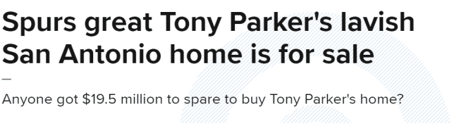 来源:24直播网12-31 15:5224直播网12月31日讯 ,据美媒报道,前马刺球星托尼-帕克准备出售位于圣安东尼奥的一处豪宅,挂牌价是1950万美元。这套豪宅的最大亮点,在于它自带豪华水上乐园,而不是普通的游泳池。