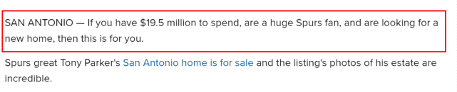 酒窖可以存放1500瓶酒,家庭影院给人老派好莱坞的感觉。健身中心设备齐全,面积超过500平方米。圣城当地媒体这样写道:“如果你有1950万美元可以花费,而且还是一个正在寻找新家的马刺球迷,那么这就是你想要的房子。”