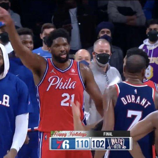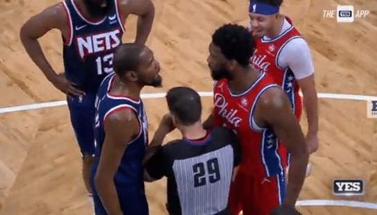 杜兰特恩比德吵架细节!离场前KD露出鬼魅笑容,冲着大帝竖起大拇指