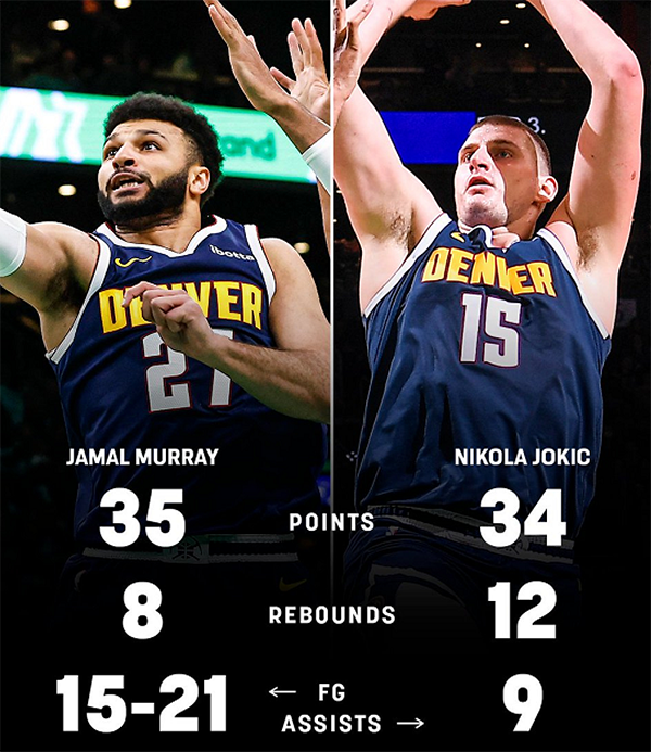 掘金的实力还是更强,而且有了去年夺冠的经历之后,这支球队经验更加丰富。这场击败凯尔特人的比赛中,约基奇和穆雷合砍69分,可以说2完胜双探花组合,戈登的手感低迷,但命中了关键罚球。同时队内的沃特森和波特也都有很好的表现。