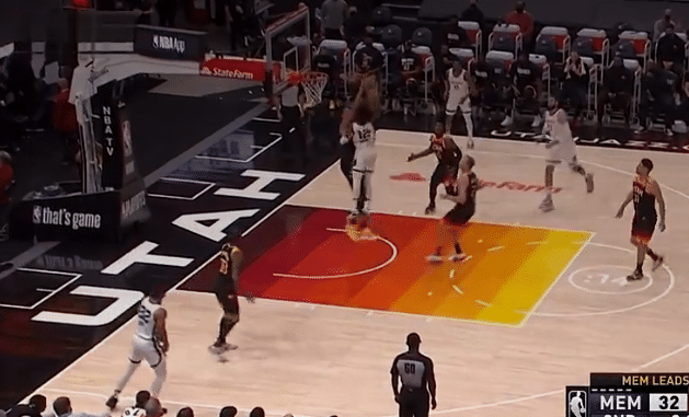 同时莫兰特还隔扣过骑士中锋乐福,他想要上演死亡隔扣,无奈的是乐福的经验更加丰富,他早就提前站好了位置,被吹进攻犯规。
