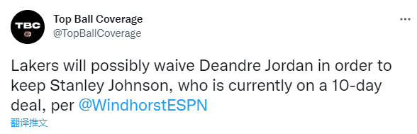 来源:24直播网12-30 09:5424直播网12月30日讯 ,据美媒Top Ball Coverage报道,湖人可能裁掉德安德烈-乔丹,从而腾出一个名额来签约斯坦利-约翰逊,目前约翰逊拿着一份十天短合同。
