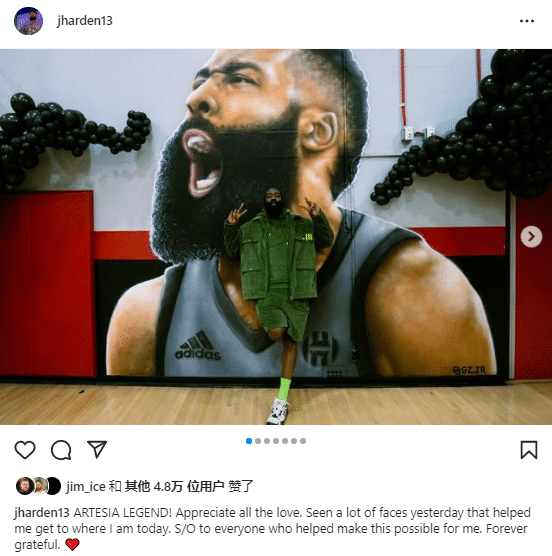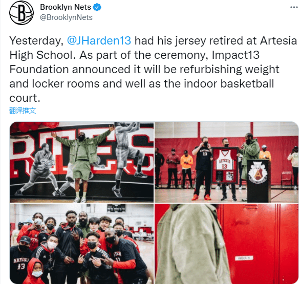 不久前,哈登本人更新社交媒体,晒出多张退役高中13号球衣的现场照,配文写道:阿迪西亚传奇!感激所有人的爱,昨天看到了很多帮助我达到今天成就的老面孔,感谢所有帮助我实现这一目标的人。永远感激(爱心表情)!