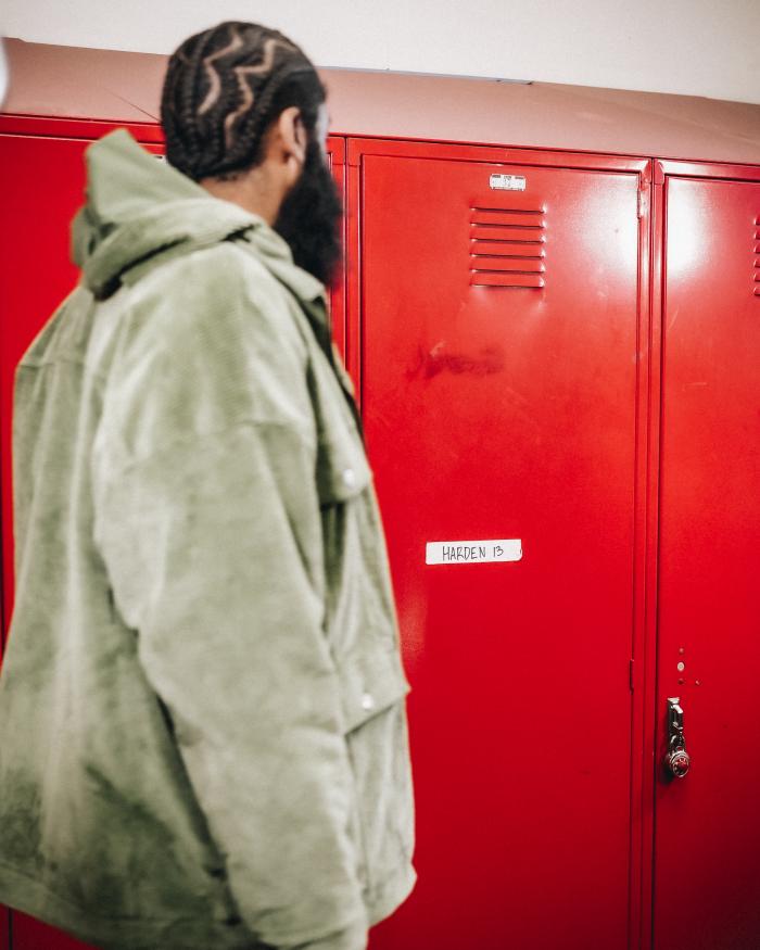 在退役仪式上,在场所有人都为哈登鼓掌欢呼,他的高中队友都来了,哈登又到更衣室回顾往事,他昔日的更衣柜上写着“哈登13”字样;哈登表示:高中母校养育了我,让我彻底爱上了篮球。